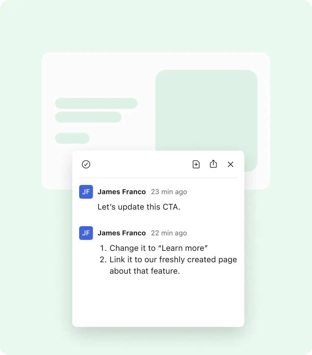 With our Chrome extension, you can easily leave feedback directly on the webpage, elimination the need for lengthy email threads.
